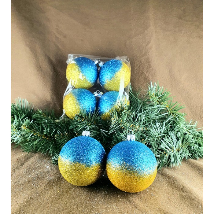 Набір новорічних кульок Синьо Жовтий 10 см 3 шт.