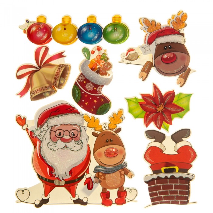 Новогодняя наклейка изготвлена из полимерных материалов, имеет хорошую гибкость, подходит для поклейки на большенство поверхностей. Также без труда снимается. Новогодняя наклейка придаст новогодний шарм и уют вашему дому или офису.